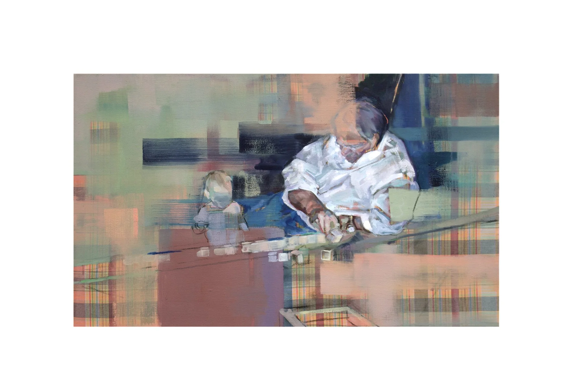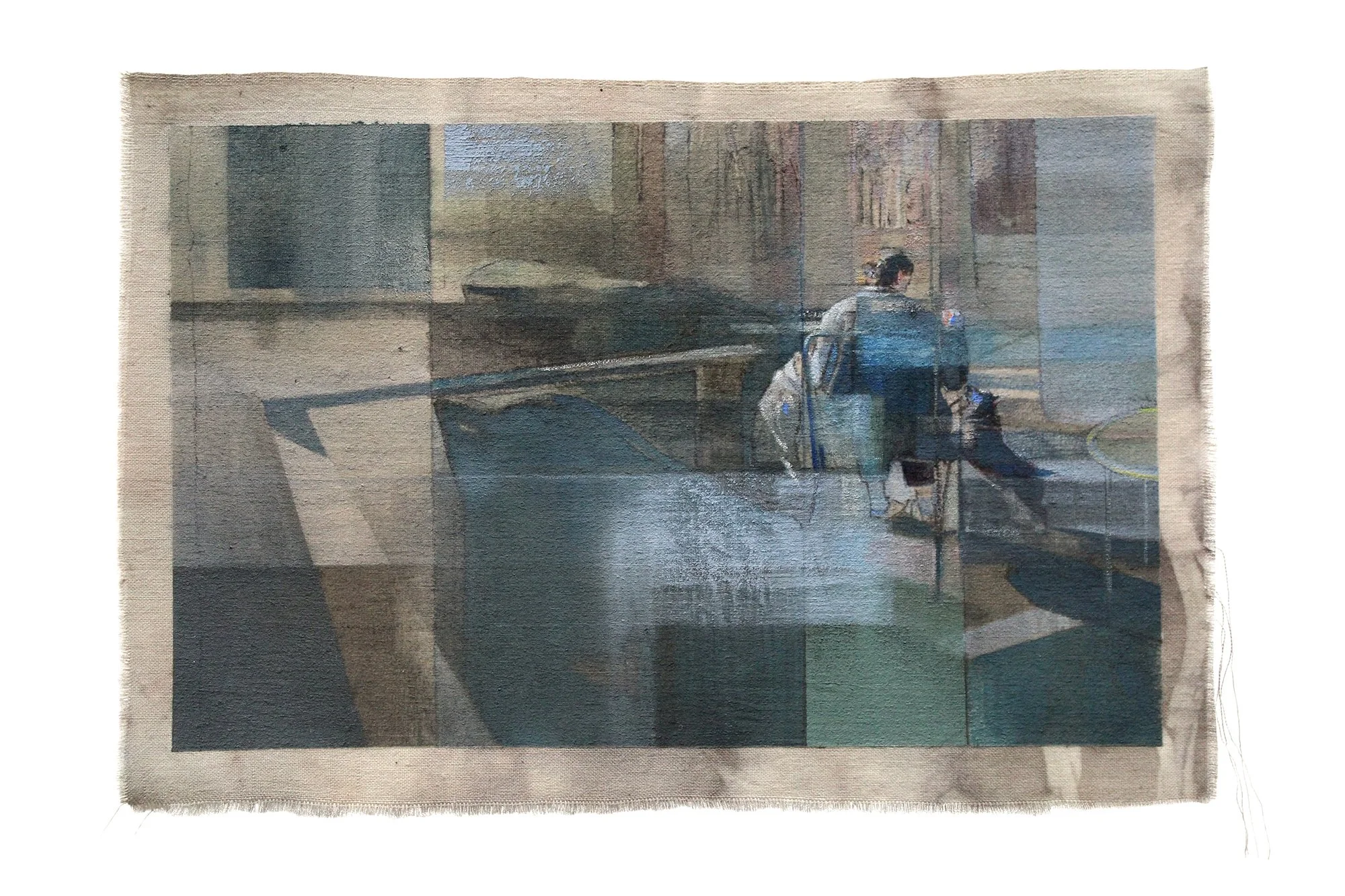 2 p.m. | oil and graphite on naturally-dyed cotton muslin | 6 1/8" x 27 7/8" | 2024