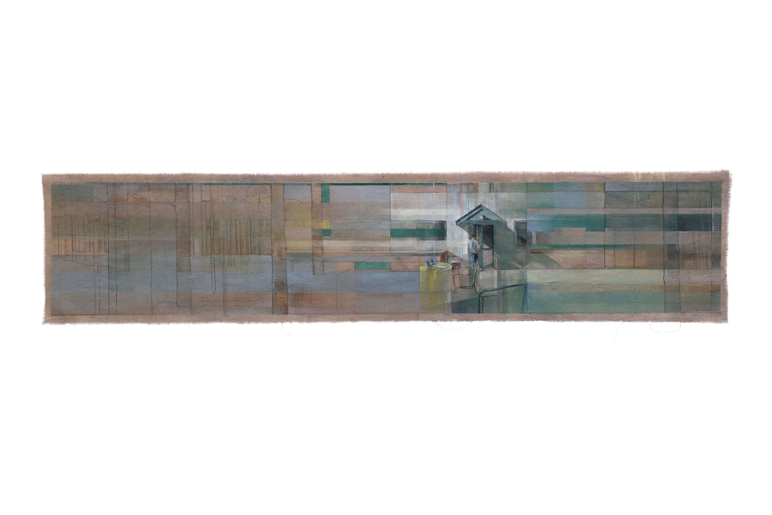 2 p.m. | oil and graphite on naturally-dyed muslin | 6 1/8” x 27 7/8” | 2024